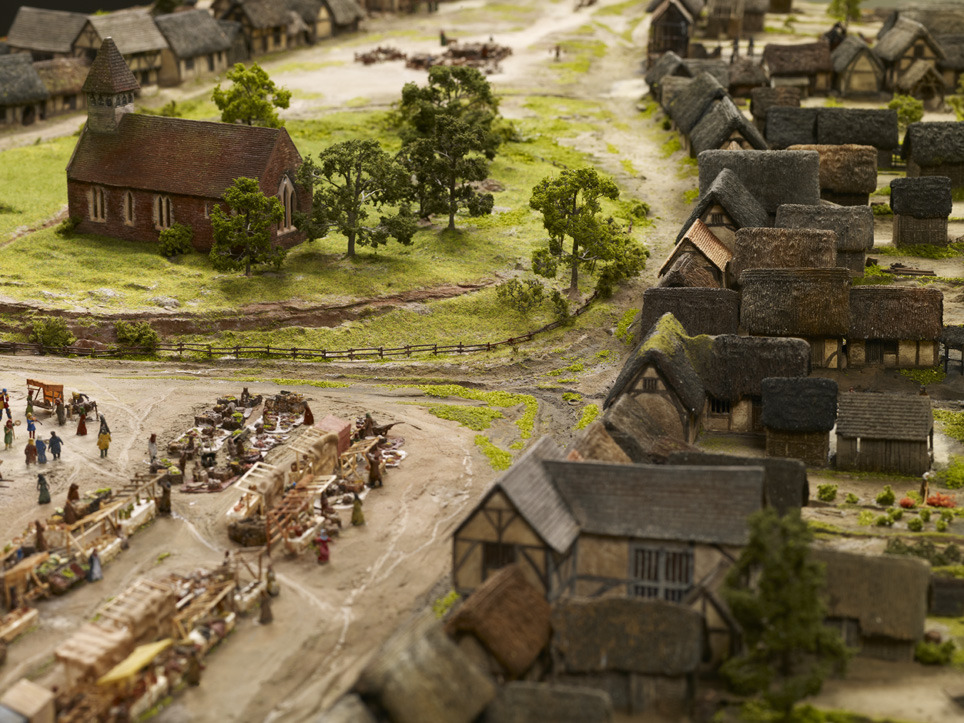 © Birmingham Museums. Depiction of medieval Birmingham at the end of the 13th century, with St Martin’s Church sitting at the centre of the town.