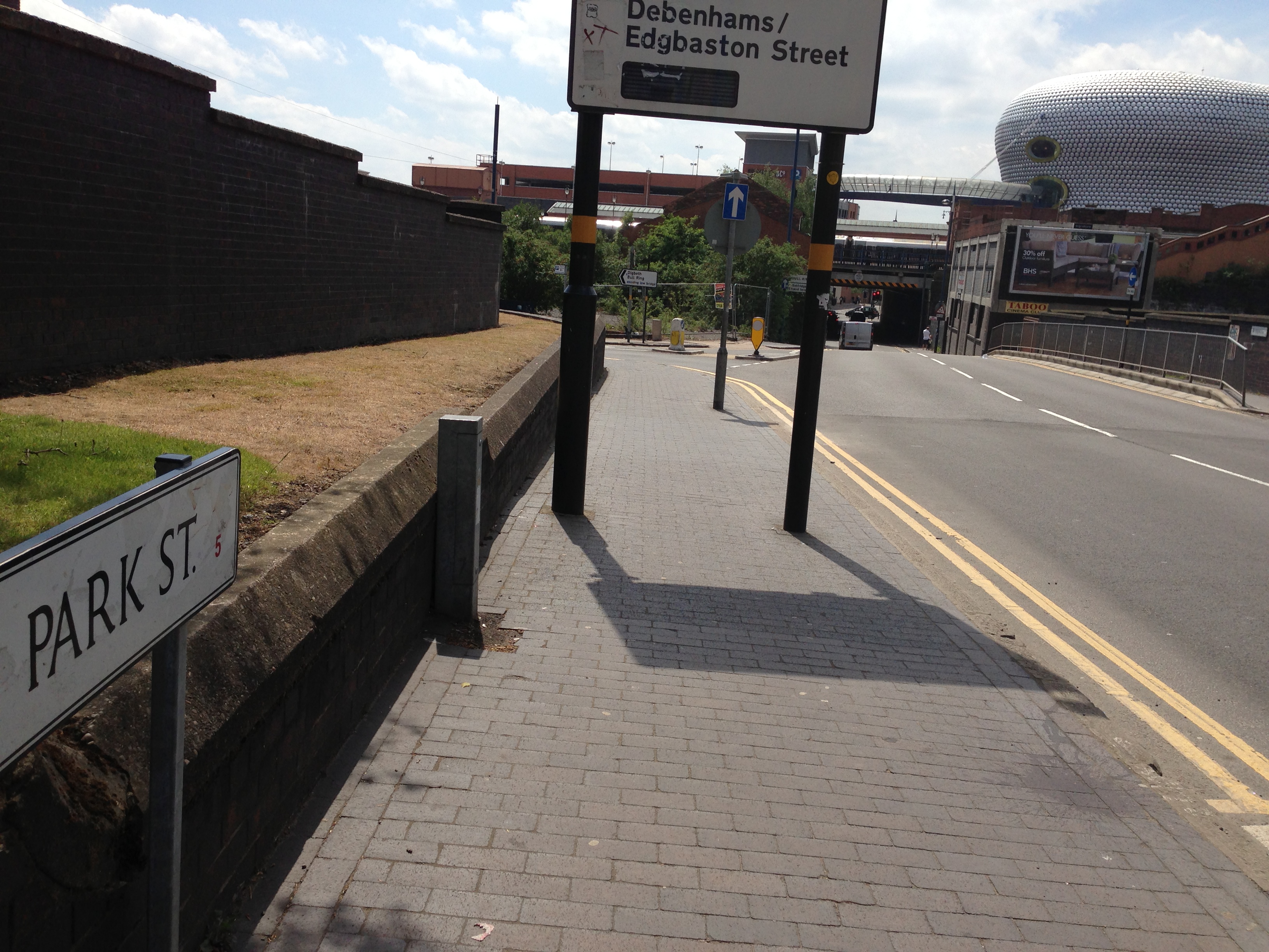 The extent of Park Street today, which actually begins around Selfridges’ car park stretching to just past this point towards Millennium Point.
