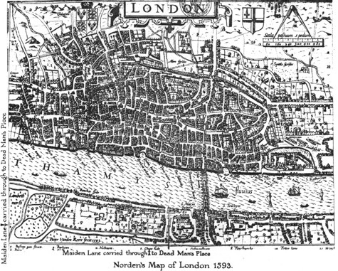 Map of London in 1593. Notice the disorder of the medieval streets. Source: http://www.medart.pitt.edu/image/England/London/Maps-of-London/London-Maps.html